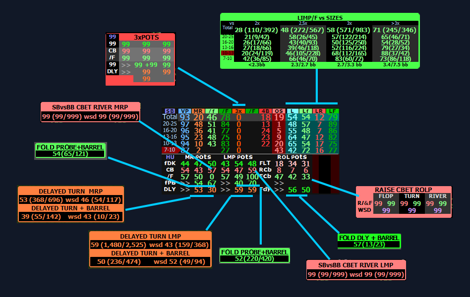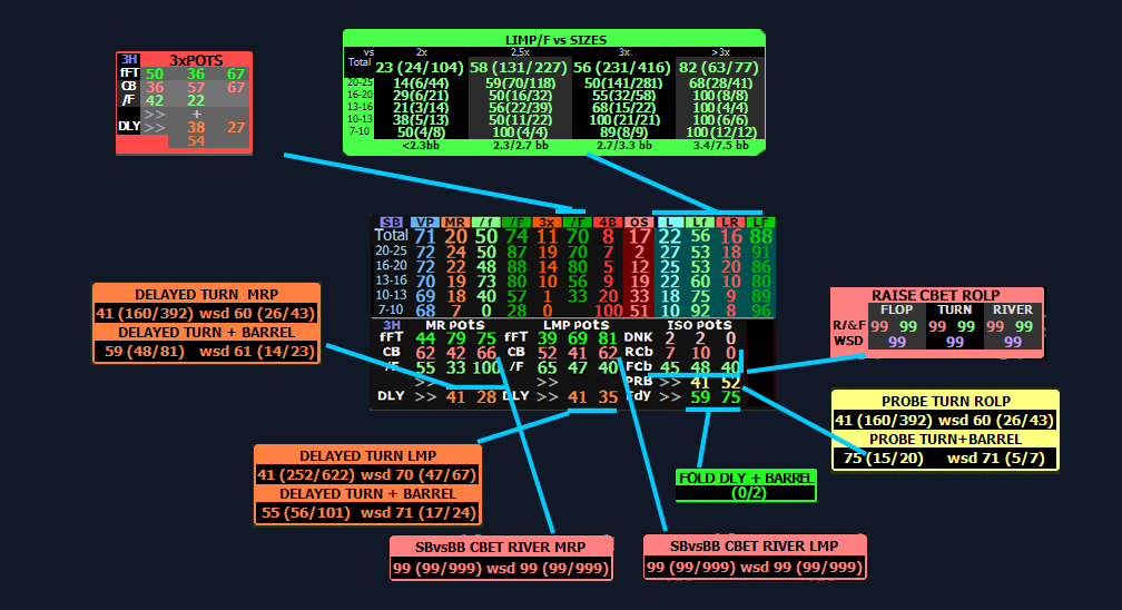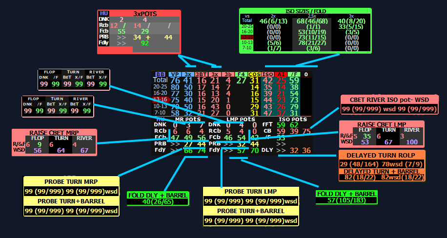 Filtrado especial: Estas stats están filtradas para botes con 2 jugadores postflop. Las stats de tamaños requieren que el stack sea al menos el 100% del tamaño del bote para maximizar la fiabilidad.