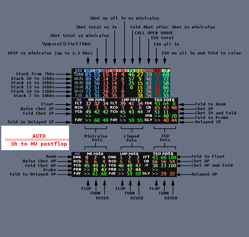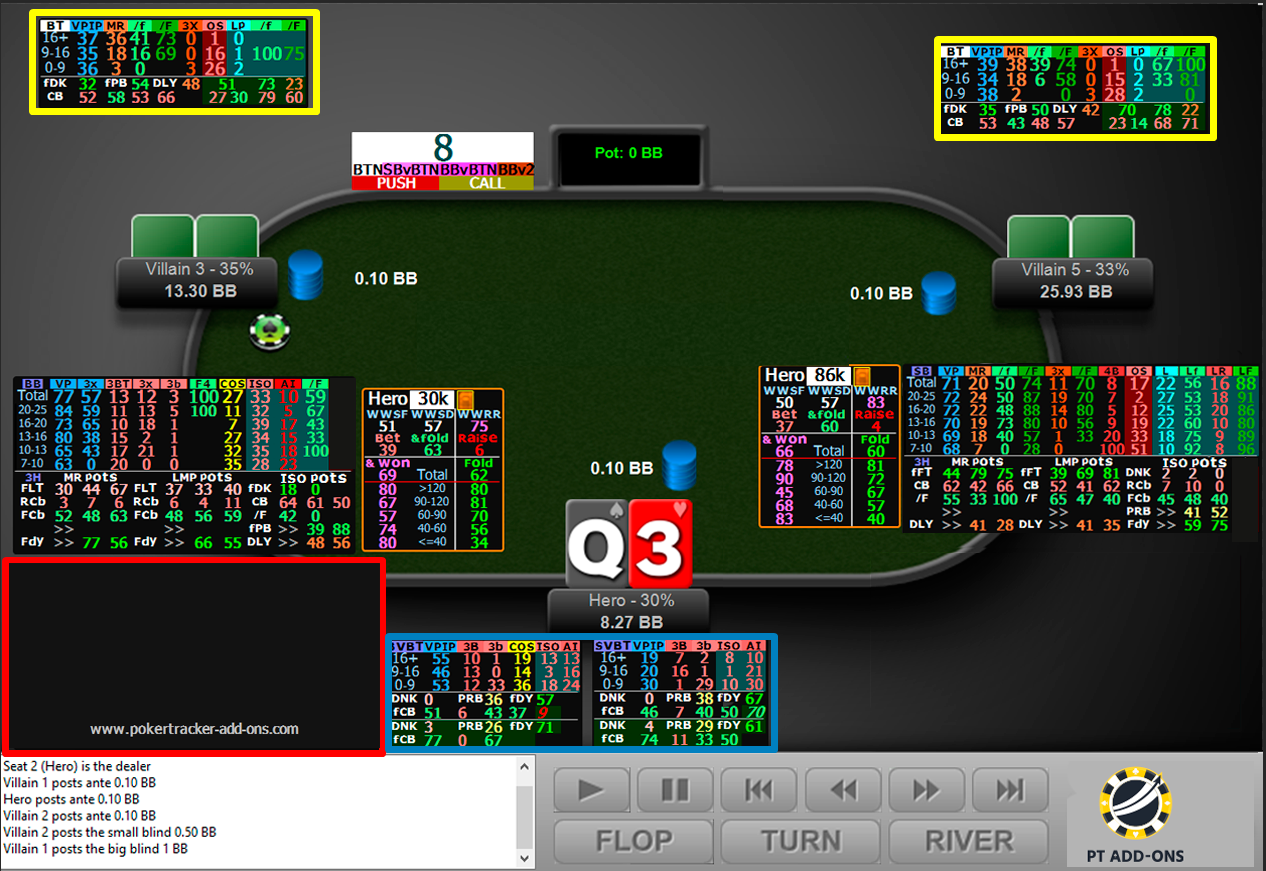 Se compone de dos HUDs que cambian automáticamente entre 3-handed y heads-up usando la funcionalidad nativa de PT4.